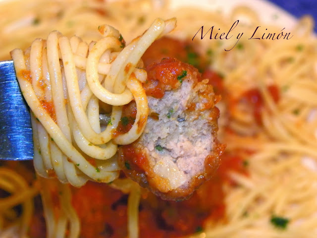 ESPAGUETIS con ALBÓNDIGAS en Salsa de Tomate al Pedro Ximénez