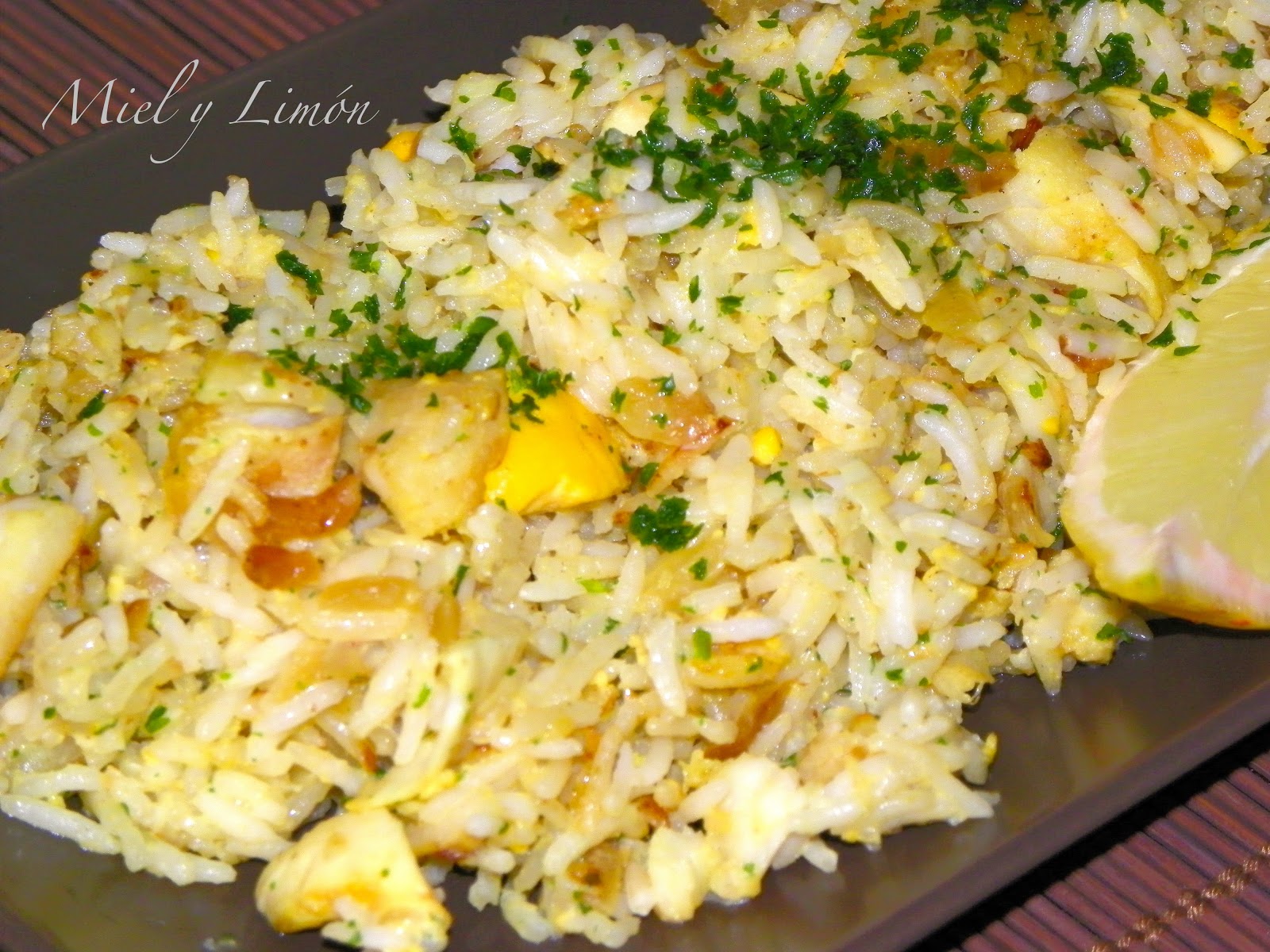 Os aconsejo que no cambieis ningún ingrediente. Yo no soy muy partidaria de cocinar con mantequilla pero la mezcla de sabores está riquísima, si hubiese puesto aceite de oliva no hubiese sido igual. Lo mismo os digo con el tipo de arroz, el basmati tiene una aroma y un sabor que no os dará el arroz normal.