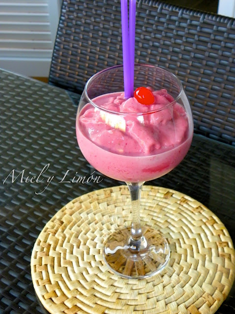Una de las cosas que más me gusta en verano es hacerme batidos de fruta congelada, en este caso para no hacerlo muy calórico, no puse azúcar ni ningún tipo de grasa. Algo refrescante que no nos aporte muchas calorías.
